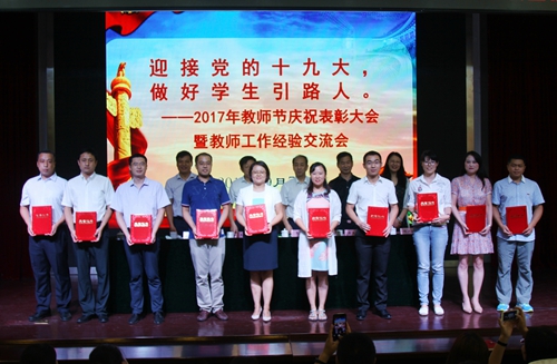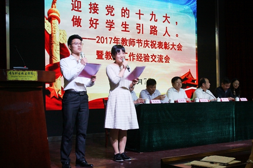 9月7日下午,学院隆重举行“迎接党的十九大,做好学生引路人——2017年教师节庆祝表彰大会暨教师工作经验交流会”。院领导王金生、覃川、刘甲珉、薛玉平、孔宪思、邢广陆出席会议,师生代表400余人参加。庆祝大会由院长覃川主持。
