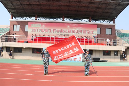 9月18日,我院2017级新生开学典礼暨军训开营仪式在学院风雨操场举行。学院领导王金生、覃川、刘甲珉、薛玉平、孔宪思、邢广陆,北海舰队相关领导及带队干部出席了开营仪式。