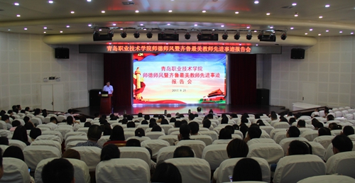 9月21日下午,学院隆重举行“志做最美灯塔,引领青职学子成才成长”主题师德师风暨齐鲁最美教师先进事迹报告会。学院领导覃川、刘甲珉、薛玉平、孔宪思出席大会,师生及家长代表400余人参加会议。报告会由党委副书记刘甲珉主持。