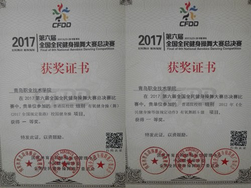9月23日至28日,2017第六届全国全民健身操舞大赛总决赛在青岛大学举行,此次大赛由国家体育总局体操运动管理中心、中国健美操协会主办,青岛大学承办,来自全国20个分站赛、30个省市的7800多名运动员参加了此次比赛。我院健美操队取得了普通院校组有氧舞蹈五级一等奖、2017全国校园健身操一等奖的佳绩。