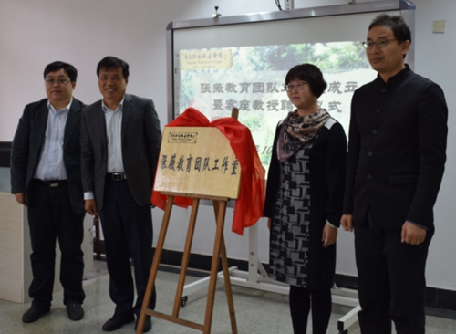 刘甲珉、张薇、王永豪、孙振超为“张薇教育团队工作室”揭牌