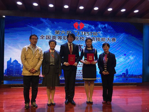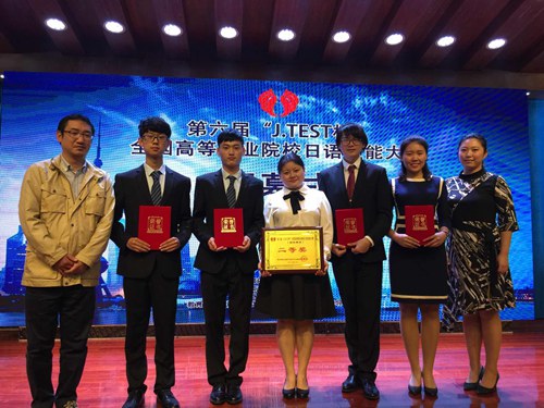 10月27日至29日,“J.TEST杯” 第六届全国高等职业院校日语技能竞赛在上海工商外国语职业学院举行,旅游学院商务日语专业2015级学生江悦、2016级学生郦镇寒、刘德满、孙祎、李盟代表学院与来自全国46所院校的150多名选手同台竞技。他们通过地道的语言、优美的日语发音、稳健的台风,精心的设计编排,展示了青职学子昂扬向上的精神风貌和竞技水平,最终荣获个人演讲赛项一等奖1项,二等奖1项;团体情景剧赛项二等奖,并荣获优秀组织奖。杜小平、苗欣、张玲、邹倩四位老师分别获得优秀指导教师奖。