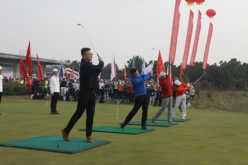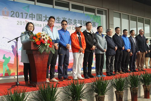 中国大学生体育协会高尔夫项目主任张玉龙等嘉宾共同为比赛开球