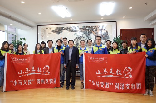 11月8日下午,“小马支教”第六批志愿者座谈会在学院综合实训楼会议室举行,学院党委书记王金生、党委副书记刘甲珉出席座谈会,并分别向“小马支教“贵州支教团、菏泽支教团二支团队的志愿者赠书、授旗。