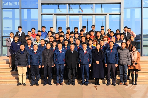 黄虎林介绍了青岛海湾集团的发展历程,集团以“技术国际化、装备大型化、环境生态化、管理现代化”的“四化”理念为指引,将企业搬迁与结构调整相结合,引进了欧洲、日韩、台湾等世界先进的工艺和装备,与国际知名化工企业英利士、徳西尼布石伟等开展技术合作,整个产业园区项目的工艺水平、装备水平、管理水平得到了大幅提升。他对企业多年来与我院的合作成果给予肯定,并希望参加学徒制培训的学生能够学习师傅的专业技术与职业精神,成为“未来工匠”。