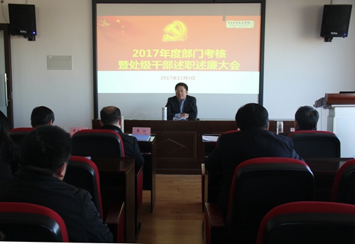12月8日,学院2017年部门考核暨处级干部述职述廉大会在综合实训楼会议室召开。10个教学院部,19个职能处室的主要负责人结合2017年本部门党政工作要点完成情况,重要工作及创新工作、存在的主要不足等方面进行了汇报。院领导、全体处级干部、教职工代表等共计110余人了参加会议。会议由党委副书记刘甲珉主持。