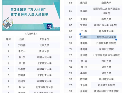 我院齐洪利教授入选第三批国家“万人计划”教学名师名单