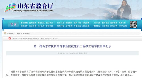 我院获第一批山东省优质高等职业院校建设工程立项建设单位