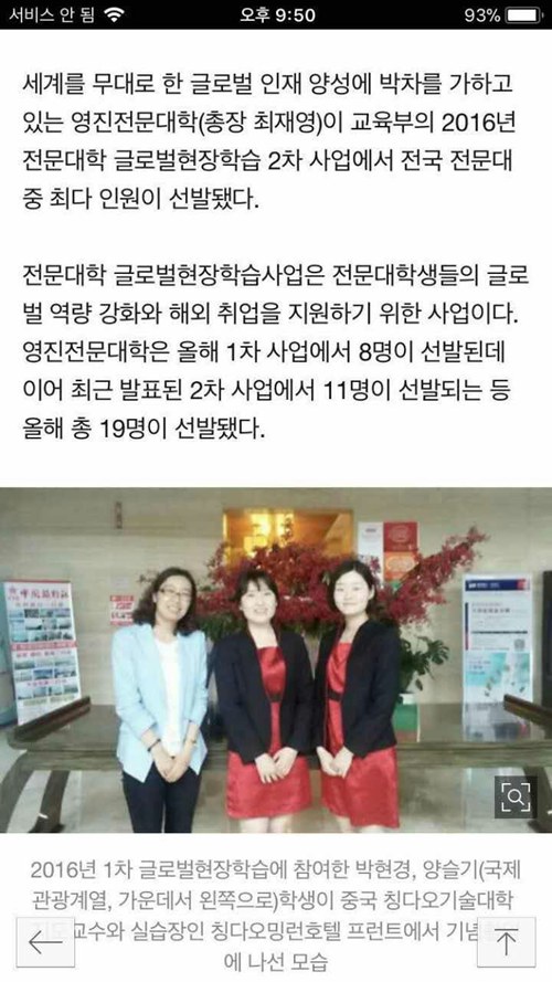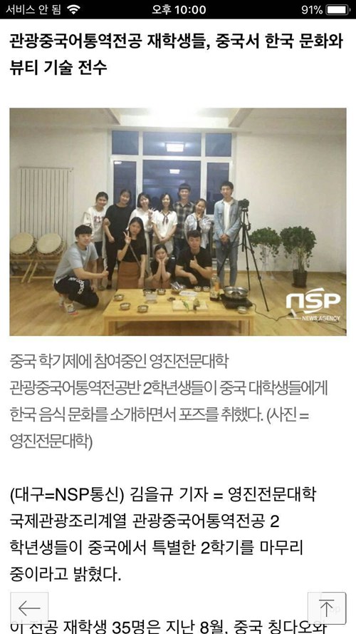 韩国媒体对我院教师指导留学生酒店实习的报道