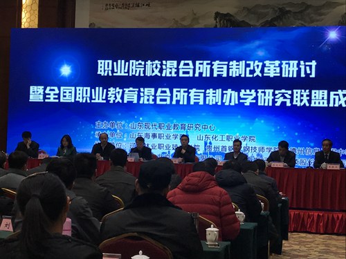1月13日至14日,由山东现代职业教育研究中心主办的“职业院校混合所有制办学改革研讨会”在潍坊召开。来自全国20个省(自治区)、市的100余家政府主管部门、职业院校、企业、行业组织代表参加会议。山东省教育厅副厅长王坦、职教处处长梁斌言、发展规划处副处长赵凤文出席研讨会。我院校企合作处、青建学院派员参加会议。