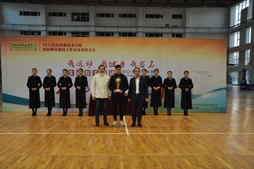 1月12日下午,学院在体育馆举行2017年度校园阳光体育总结表彰大会。院长覃川、党委副书记刘甲珉、纪委书记刘伟、副院长邢广陆出席表彰大会,学生处、工会、教务处、基础教学部及各二级学院相关负责人参加大会。