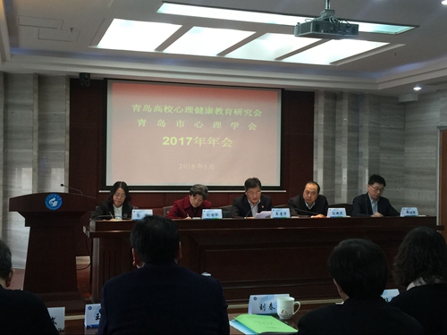 刘新民在致辞中向与会代表介绍了山东科技大学基本情况和心理健康教育工作开展的现状;车景华分析了当前青岛高校心理健康教育工作呈现的主要特点;刘国秋作2017年度工作报告,总结了在青各高校一年来的心理健康教育工作成效;高桥宣读了2016-2017年度青岛高校心理健康教育研究优秀成果和工作创新项目表彰决定,我院在青岛高校心理健康教育研究优秀成果评选中再创佳绩:教育学院的“阳光心旅”每月一讲大型公益心理讲坛荣获青岛高校心理健康教育工作创新奖;黄西慧的《个案咨询中森田疗法的应用研究》荣获青岛高校心理健康教育研究优秀成果一等奖;郑洪利、郑咏梅的《大学生创业者积极心理资本调查研究》以及鞠晓辉的《幼儿教师EAP培训课程开发》两项研究成果荣获青岛市心理学会优秀科研成果一等奖。王双蕊、刘钊乐、李文斌三位老师获得科研成果二、三等奖。