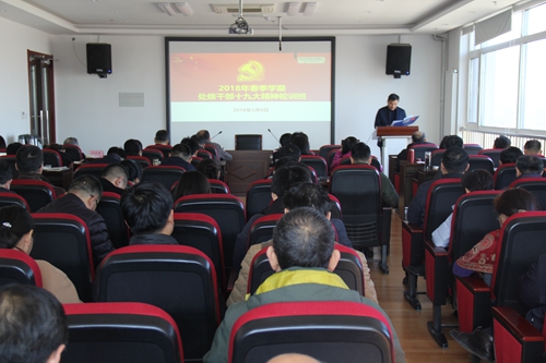 处级干部党的十九大精神轮训班是根据市委统一要求由学院组织的,也是学院每年干部培训的传统班次,培训历时五天,通过邀请专家讲课等形式,对全体处级干部进行了党的十九大精神、习近平新时代中国特色社会主义思想、管理工作等方面的培训。
