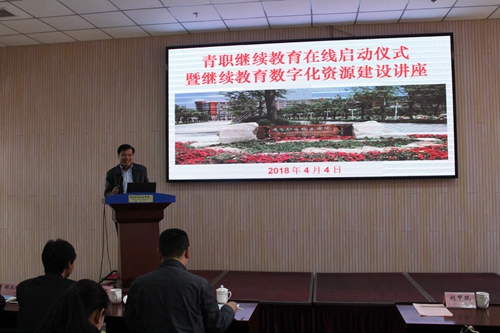 仪式结束后,郭成作了题为《继续教育信息化建设与应用》的讲座,他用大量事实和数据分析了在线教育的特点和优势以及资源建设、在线平台发展方向等热点问题,其丰富的内容、精辟的语言、创新的观点让老师们收获颇丰。