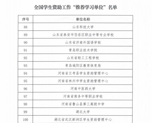 我院入选全国学生资助工作“推荐学习单位”名单