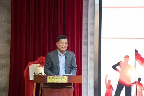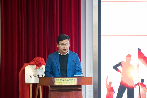 刘甲珉在讲话中指出,大学生艺术团经学院党委研究设立,是提高我院大学生艺术水平的重要载体。大学生艺术团的成立不仅可以丰富大学生的课余生活,还可为社区送去艺术作品,让周边的市民一起享受艺术。他希望艺术团成员能遵守章程,不断增强自身的艺术修养和服务能力,成为学院一道亮丽的风景线。