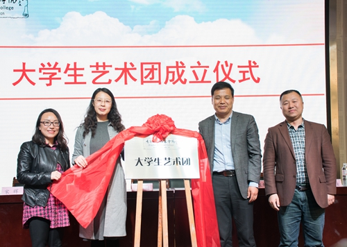 4月19日下午,学院大学生艺术团揭牌成立仪式在艺术厅举行。党委副书记刘甲珉、副院长邢广陆出席仪式,思政部、学生处负责人,各二级学院党总支书记参加了仪式,会议由大学生素质发展中心主任宋辉主持。