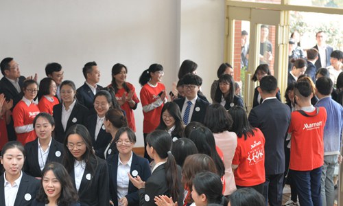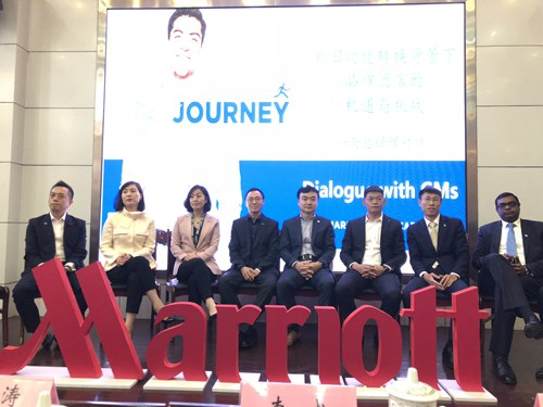 此次论坛结合万豪国际集团每年例行的“Journey WeekYoung Hoteliers Day”(年轻酒店一天旅程周)活动,分为两个环节展开。第一个环节由总经理介绍各自的职业生涯,周涛和张燕分别与同学们分享了自己从一线员工一步步成长为总经理的工作履历,展示了酒店职业发展路径,向同学们提出了职业规划的建议。第二个环节中,同学们就“新旧动能转换背景下,品牌酒店的机遇与挑战”,结合自身学业发展和职业展望,向9位总经理进行了提问。学生们十分珍惜与业界大咖面对面交流的机会,大家认真听讲,积极参与互动并表示受益匪浅。过程中穿插了茶歇、抽奖互动等环节,气氛热烈、欢动愉悦。