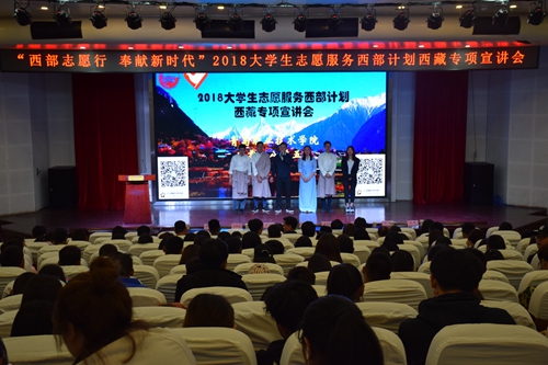 5月2日,2018年西藏自治区优秀西部计划志愿者宣讲报告会在我院艺术厅举行。共青团西藏自治区委员会志工部副部长孟健,山东省志愿者行动指导中心活动部部长刘杰,我院党委副书记刘甲珉以及师生代表400余人参加了报告会。