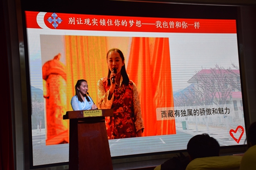 一部反映“雪域高原”建设发展成就和西部计划志愿者无私奉献、建功边疆故事的宣传片拉开了报告会的序幕。现场师生们对雪域高原的历史文化、经济社会发展情况和志愿者工作生活现状有了初步了解,世界屋脊湛蓝的天空,洁白的云朵,神奇瑰丽的雪山更让人心驰神往。
