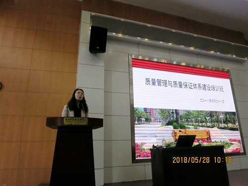 5月28日上午,学院在报告厅举办质量管理与质量保证体系建设培训班。学院党委书记王金生、党委副书记刘甲珉、副院长薛玉平、纪委书记刘伟出席培训班现场,全体副处级以上干部、各二级院部教研室主任、学生工作负责人及部分无课教师参加了培训,副院长邢广陆主持培训。