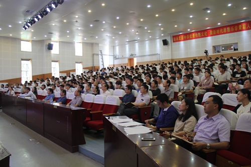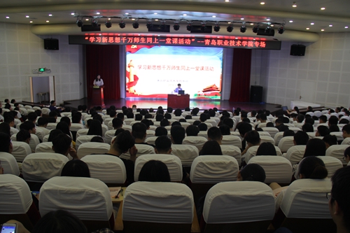 为深入学习宣传贯彻习近平总书记在北京大学师生座谈会和纪念马克思诞辰200周年大会上重要讲话精神,6月15日上午,我院在艺术厅举行“学习新思想千万师生同上一堂课”活动。活动特邀山东高校习近平总书记重要讲话精神讲师团授课专家、青岛大学马克思主义学院教授、硕士生导师曲新英作题为《习近平新时代中国特色社会主义思想解读》的专题讲座。党委书记王金生、党委副书记刘甲珉、副院长薛玉平、纪委书记刘伟、副院长邢广陆出席讲座现场,全院处级干部、辅导员、思政课教师、教工党员代表及学生代表共400余人到现场聆听了讲座。讲座由宣传部部长田秀丽主持。