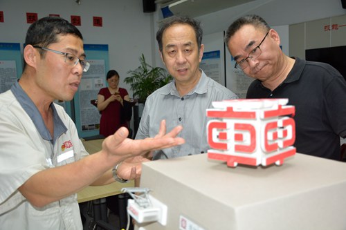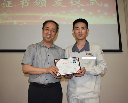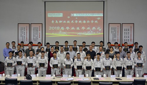 在总装分厂会议室,覃川一行为海尔学院2018届中车实习毕业生颁发毕业证书。随后,走访考察了“周勇技能大师工作室”。周勇介绍了工作室的基本情况、工作室成立以来取得的成绩及工作室的主要培训内容等。双方就职业院校人才培养、实训条件建设、技能大师工作室建设等方面进行了深入交流。