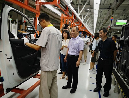 随后,覃川一行参观了工厂总装车间、焊装车间,实地考察了学生的工作岗位,看望我院2017级工学交替实习学生。