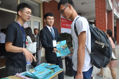 志愿者向新生赠送报到引导地图