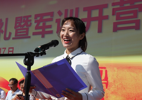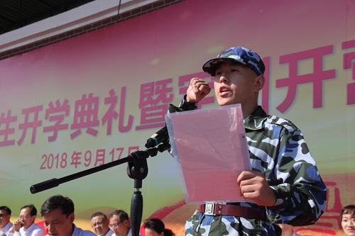 我院2018级新生代表赵庆安带领全体新生进行军训宣誓