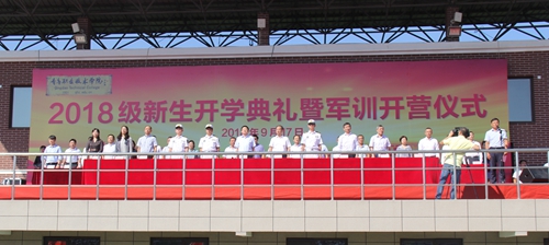 学院党政办、组织部、宣传部、教务处、招生就业处、学工部负责人、各二级学院主要负责人,41名承训教官、全体新生班辅导员和2018级全体新生参加了活动。
