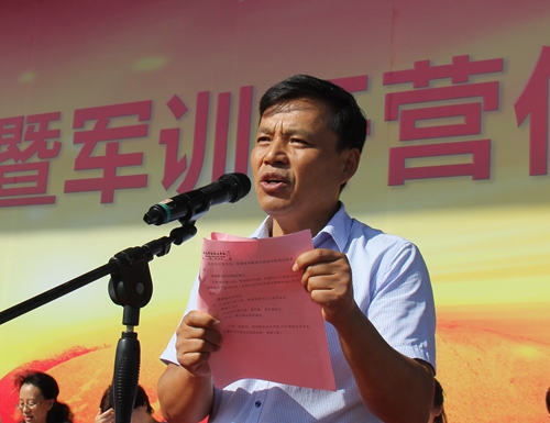 党委书记王金生讲话。他向承担此次军训任务的北海舰队某部队表达感谢,并对全体新生表示欢迎。他指出,2018年是贯彻党的十九大精神的开局之年,改革开放40周年,决胜全面建成小康社会的关键之年;又是山东省新旧动能转换重大工程全面展开,上合组织峰会扬帆青岛,高职教育进入新一轮高质量发展的重要时期,他希望2018级全体新生以爱国、敬业、诚信、友善为己任,筑牢中国特色社会主义核心价值观,传承发展中华优秀传统文化,勤奋学习,勇于实践,健康成长。讲话中,他勉励新生要厚德修身坚定理想信念,做有理想的青职人;要乐学勤思练就高精技能,做有本领的青职人;要修能致用服务社会,做有担当的青职人。他要求同学们在军训中端正态度、尊重教官,听从指挥、顽强拼搏,团结协作、互相帮助,以良好的精神面貌展现“青职风采”,学院相关部门精心组织、周密安排,密切配合承训部队开展日常训练,确保此次军训任务高质量地完成。