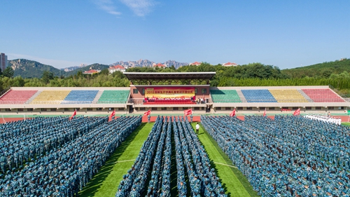 9月17日,我院2018级新生开学典礼暨军训开营仪式在学院风雨操场举行。学院领导王金生、覃川、刘甲珉、薛玉平、刘伟、孔宪思、邢广陆,北海舰队相关领导及带队干部出席开营仪式。