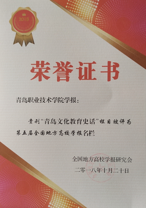 在此次评优中,《青岛文化·教育史话》栏目系首次在全国范围获奖,也是仅有的两个来自高职院校学报的名栏之一。其它获此殊荣的栏目均来自本科院校学报,包括3个教育部高校哲学社会科学学报名栏和7个全国高校社科期刊特色栏目。