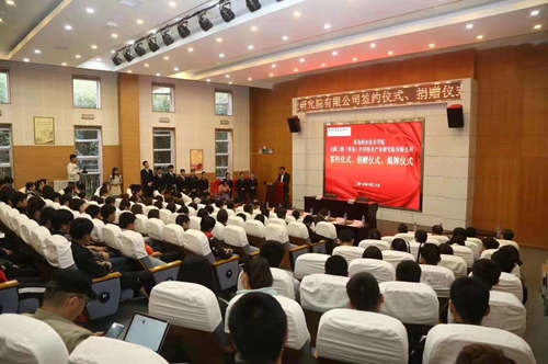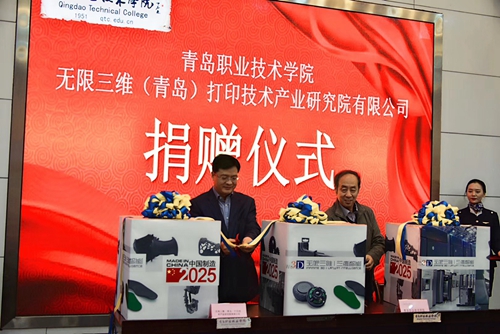 10月25日,学院与无限三维(青岛)打印技术产业研究院有限公司签约仪式、捐赠仪式、揭牌仪式在学院报告厅举行。学院党委书记王金生、院长覃川、副院长薛玉平、副院长孔宪思,无限三维(青岛)打印技术产业研究院有限公司董事长罗军、研究院院长张利利出席仪式。项目经理孟涛以及学院校企合作处、教务处、办公室、艺术学院相关负责人、教师、产品艺术设计专业、动漫设计与制作专业2018级全体学生参加了大会,仪式由艺术学院院长乔璐主持。