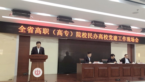 省教育工委常务副书记、教育厅厅长、党组书记邓云锋讲话。他充分肯定了近年来高职(高专)院校和民办高校党建工作取得的成绩,就深入推进高职(高专)院校和民办高校党建工作重点任务落实提出要求。要加强党对高校的领导,加强和改进高校党的建设,使高校成为坚持党领导的坚强阵地。要把政治建设作为高校党建工作的首要任务,牢牢把握办学正确政治方向。要紧紧围绕立德树人根本任务推进高校党建,服务高校改革发展大局,推动高等教育人才培养目标的实现。要把提升组织力作为高校党建工作的着力点,全面加强基层党组织建设。要坚持问题导向,进一步落实党建工作主体责任。
