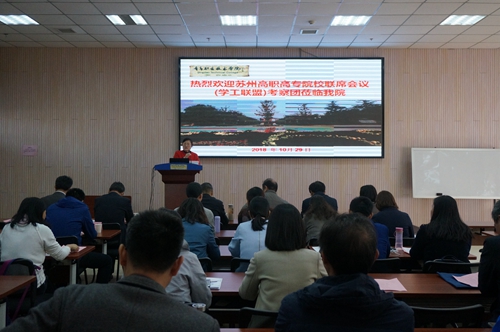 10月29日下午,苏州高职高专院校联席会议学工联盟考察团一行40人,由苏州市职业大学副校长熊贵营带队,来院考察交流,院长覃川、副院长薛玉平会见考察团一行。招生就业处、学生处、志愿服务学院负责人参加交流。
