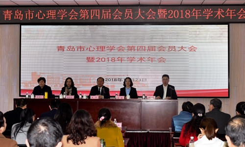 近日,青岛市心理学会第四届会员大会暨2018年学术年会在学院南校区报告厅举行,青岛市心理学会理事、会员190余人参加了会议。市科协副主席王军、市委教育工委思政处处长高桥出席会议。