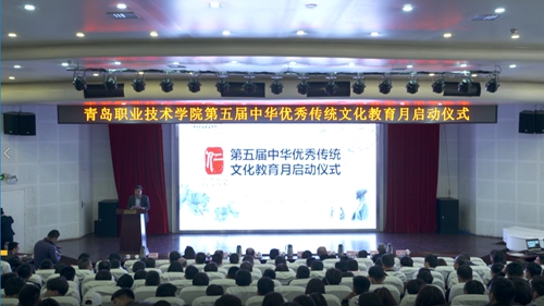 4月2日,学院在艺术厅启动第五届“中华优秀传统文化教育月”活动。学院领导王金生、覃川、刘甲珉、薛玉平、刘伟、孔宪思、邢广陆,曲阜师范大学孔子文化研究院院长、国学院院长、儒学泰山学者特聘专家马士远教授,青岛市慈善总会爱基金副会长文哲等嘉宾出席启动仪式,学院各职能处室、二级学院负责人,教师和学生代表400余人参加了启动仪式。仪式由党委副书记刘甲珉主持。
