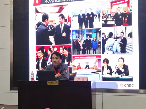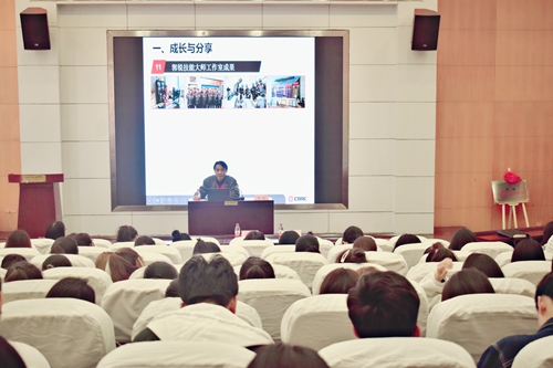 揭牌仪式结束后,郭锐作题为“弘扬工匠精神,技能成就梦想”的专题报告。报告会上,郭锐从成长与分享、职业与梦想和工匠精神理解三个方面分享了成长奋斗经历,讲述了其参与和谐号、复兴号的研发和生产的过程。郭锐朴实真挚的言语让在场的师生感受到他对工作的无限热爱和对动车事业的无限追求。他指出“工匠精神”的精髓就是用心干活、干良心活、用心诠释人生。郭锐还传达了第十三届全国人民代表大会第二次会议的精神,分享了参会感受。郭锐的精彩报告赢得了与会师生热烈而持久的掌声,大家纷纷表示在今后的工作和学习中会不忘初心,用实际行动传承工匠精神。
