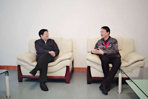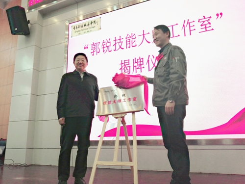 党委书记王金生与郭锐共同为“郭锐技能大师工作室”揭牌