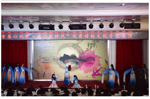 为弘扬五四精神和中华优秀传统文化,引导广大学生坚定理想信念,用奋斗的青春为中华人民共和国成立70周年献礼,4月25日,由党委宣传部主办,院团委和大学生素质发展中心承办的“青春心向党·建功新时代”优秀传统文化文艺展演活动在艺术厅举行,党委副书记刘甲珉出席活动现场,宣传部相关负责人、各二级学院分管共青团工作负责人,各二级学院团总支书记、师生代表共400余人现场观看了演出。