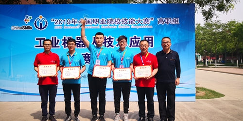 5月8日至9日,2019年全国职业院校技能大赛高职组工业机器人技术应用赛项在天津机电职业技术学院举行。经过2天激烈角逐,由我院海尔学院崔连涛、李峰两位教师指导的工业机器人技术专业学生代军、郭金鑫、张伟民组成的代表队团结协作、沉着迎战、稳定发挥,最终喜获大赛一等奖,崔连涛、李峰被评为大赛“优秀指导教师”,这是该赛项设立以来我院取得的历史最好成绩。