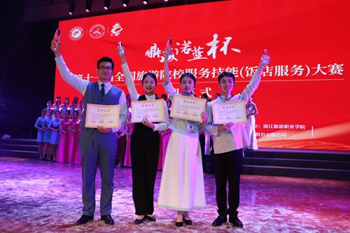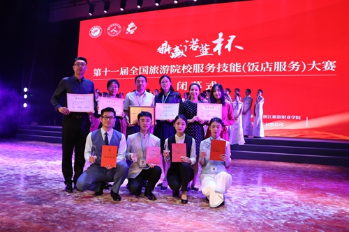 5月16日至18日,第十一届全国旅游院校服务技能大赛在浙江杭州举行,我院酒店管理专业选派4位选手分别参加西餐宴会摆台、鸡尾酒调制、中式铺床、中餐宴会摆台全部4个单项比赛。经过为期3天的激烈角逐,我院参加的4个赛项全部荣获一等奖,囊括了赛事的所有最高奖项,并获高职组团体奖。我院与东道主浙江旅游职业学院、山东旅游职业学院是获得全部奖项一等奖的三所院校。
