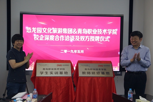 5月24日,党委书记王金生带队走访江苏常州恐龙园文化旅游集团。江苏常州恐龙园文化旅游集团总裁许晓音、人力资源总监陈爱国等接待了学院走访一行。校企双方共同举办恐龙园集团储备干部培养学院、维多利亚vic003学生实训基地、维多利亚vic003教师研修基地揭牌仪式,并就进一步推进校企合作、产教融合进行了深度会谈。