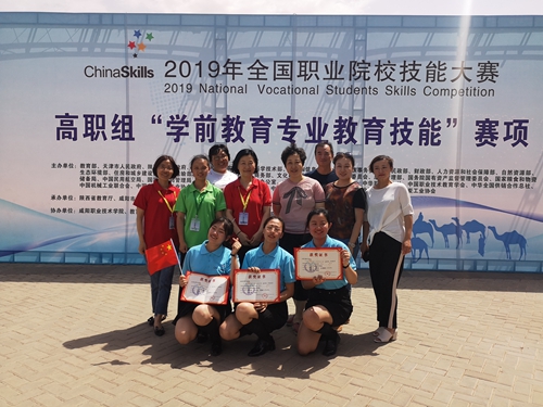 5月25日,2019年全国职业院校技能大赛学前教育专业教育技能比赛在咸阳职业技术学院举行,来自全国59所高职院校的代表队参加了此次比赛。由我院教师李向群、杨艳指导的学前教育专业学生黄京文、王珍珍、高洁组成的代表队荣获团体二等奖。