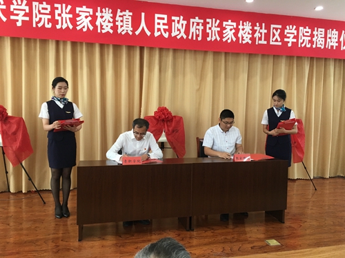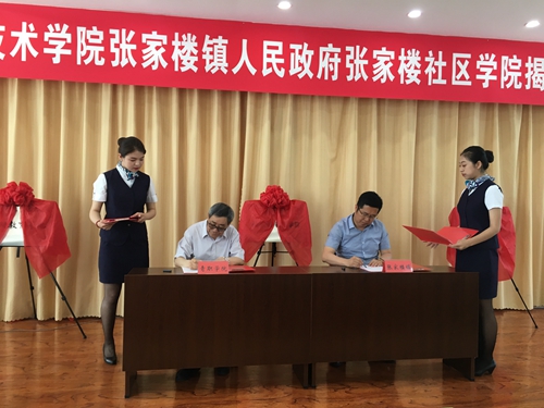 自2014年3月,学院与灵珠山街道办事处合作成立全国高职院校首个城镇化社区学院以来,经过不断的实践和总结,学院构建了系统的社区教育体系,先后建立180余个志愿服务基地,开展公德教育,形成了“小马支教”“美丽乡村行”“微爱课堂”等一批工作品牌,育人成效显著。今后,张家楼社区学院将在大学生社会实践、党建共建、职业技能培训、社区文化建设、促进新时代文明实践、创新社会治理和区校社会治理协同共治等方面发挥积极作用,校政协同育人。在此基础上,双方还将共建大学生社会实践基地、劳动基地等,发挥学院职业技能培训和专业技术优势,做好现代农业、服务业等产业、企业对接,深入开展文化共建。