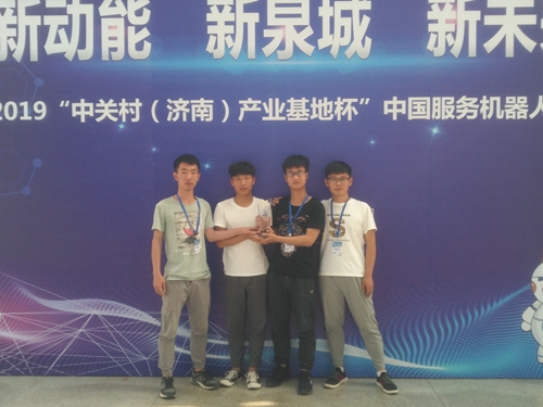 6月1日至2日,在2019中国机器人大赛服务机器人专项赛比赛中,由我院信息学院学生曲俊东、窦全磊、罗纪、刘俊廷、黄传瑜、张森、陈康健组成的代表队,在指导教师孟宪宁、王靓的指导下,喜获物流搬运机器人项目亚军。
