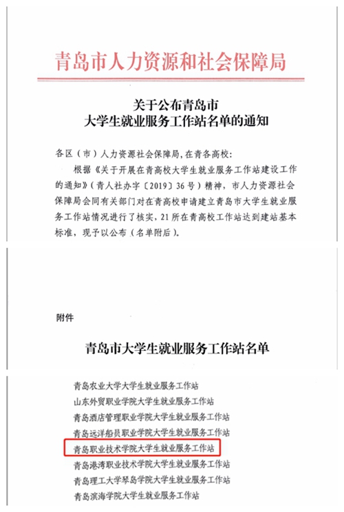 近日,青岛市人力资源和社会保障局公布“青岛市大学生就业工作服务站”名单,我院被确立为“青岛市大学生就业工作服务站”。