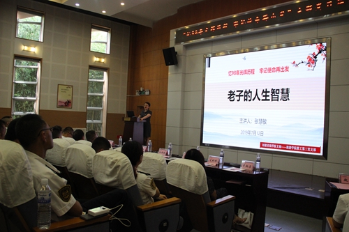 李明杰介绍了学院的基本情况、学科设置、招生就业、校企合作、人才培养、旅游学院党组织建设、旅游学院承接校园学生研学活动、社区主题党日的校园资源和师生公益行等情况,并带领全体党员同志重温入党誓词。省高校党建工作样板支部旅游学院教师第三党支部书记张慧敏副教授为与会人员做了一场题为《老子的人生智慧》的普及道德经和道家文化的公益讲座。最后,全体党员在旅游学院初心宣讲团成员的带领下,参观了红色书院革命烈士红色家书展览、改革开放四十周年成就展览、校史馆、T—GARDEN火车咖啡厅、歼六战斗机、民间技术馆等校内独具特色的工业文化展品、民宿展品等。